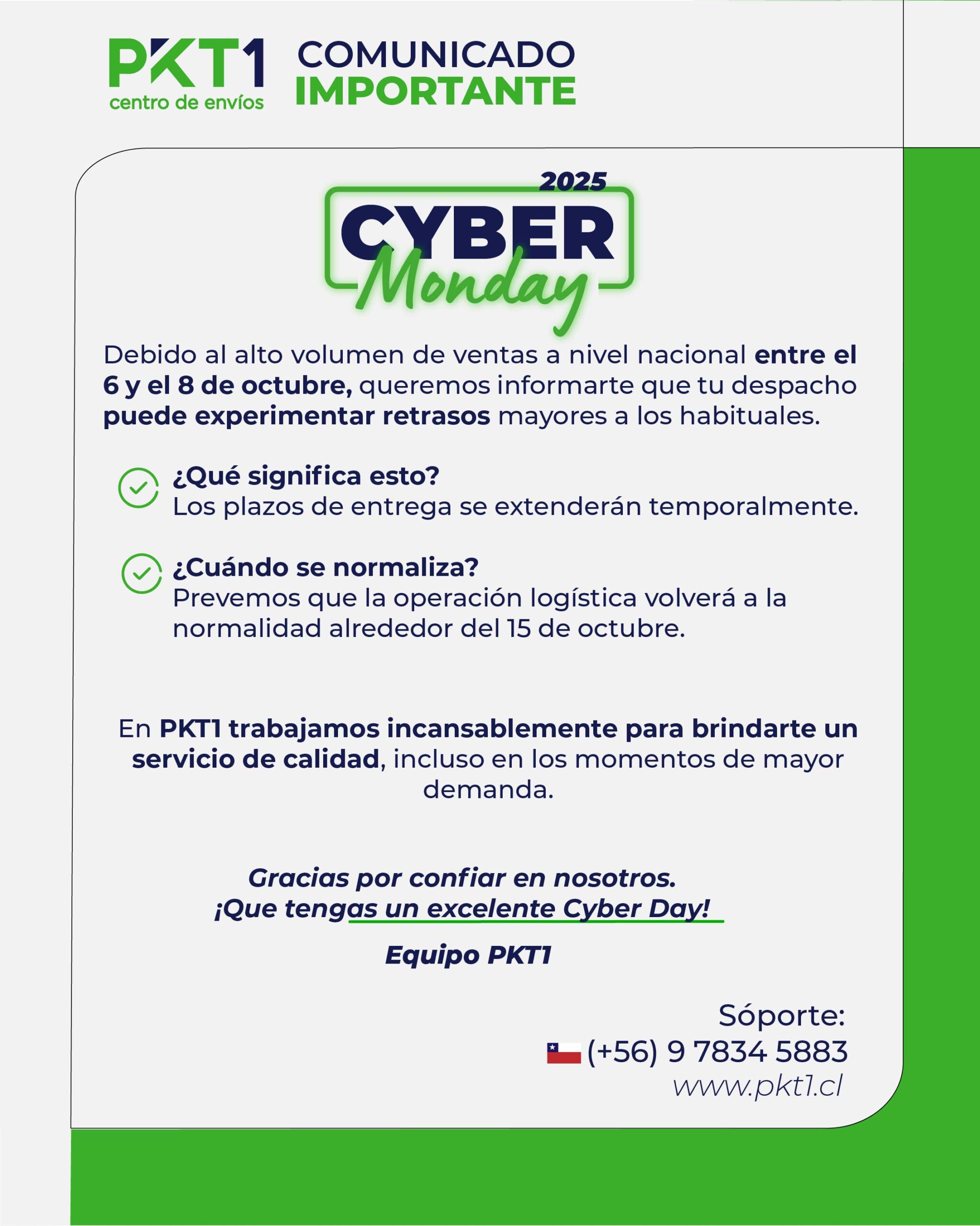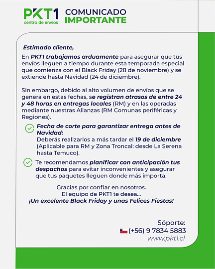 El servicio de PKT1 es de primera, siempre preocupados del cliente y responden rápido a todo requerimiento."